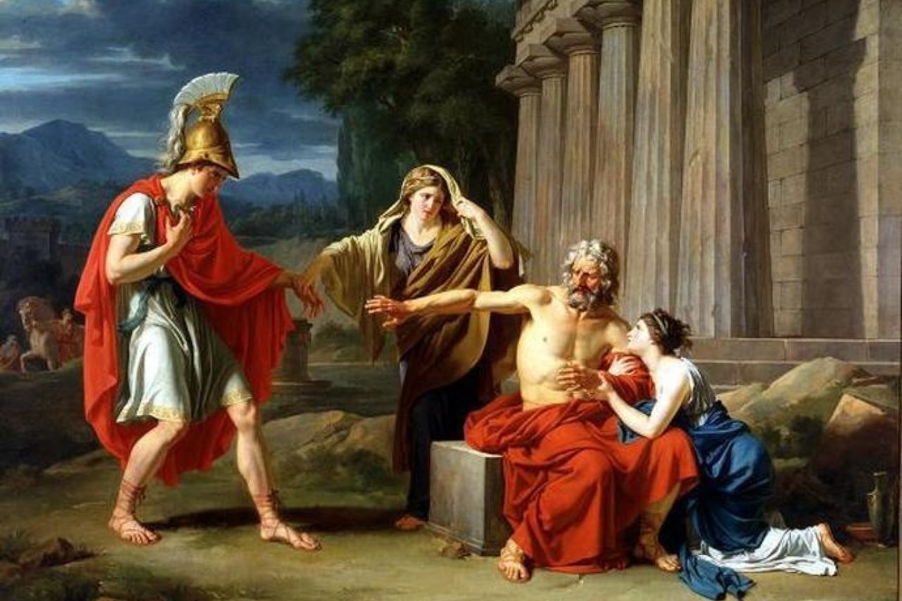 The classic example of a Greek tragedy begs to be analyzed as its events culminate in the combination of divinity, morality, and justice. Their family's curse stems from her grandfather, King Laius, who raped and kidnapped Chrysippus, cursing his family into tragedy. The curse continues down to Antigone, who ends their tragic fate, leaving her sister, Ismene, the sole survivor of their family.